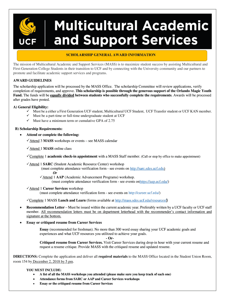Get the free SCHOLARSHIP GENERAL AWARD INFORMATION - mass sdes ucf