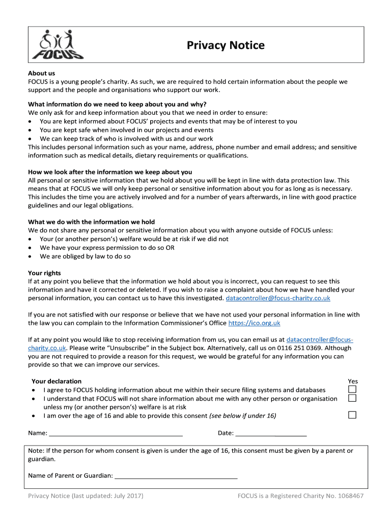 How to fill out privacy notice - focus-charitycouk
