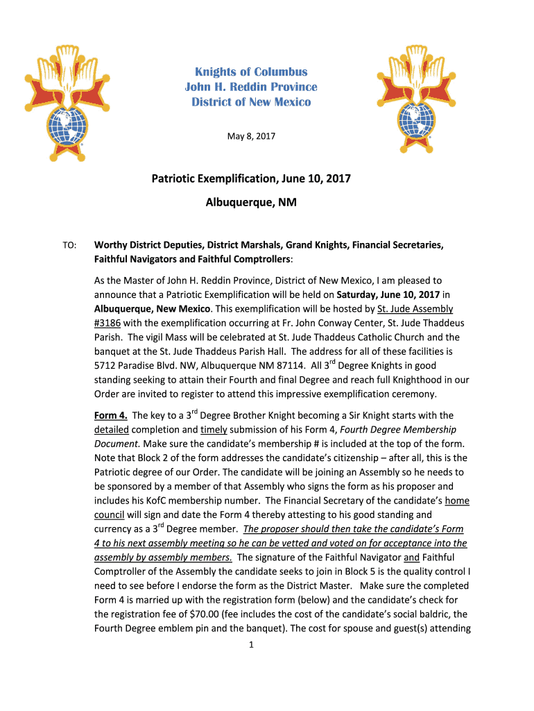 Albuquerque, NATO:Worthy District Deputies, District Marshals, Grand Knights,