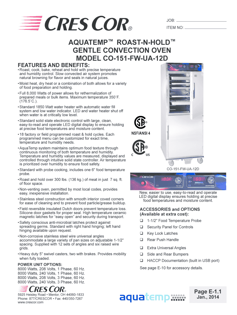 Get the free roast-n-hold gentle convection oven model co ... - Cres Cor