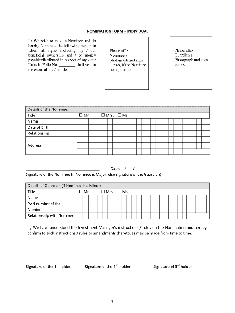 Get the free NOMINATION FORM INDIVIDUAL - piramalfundmanagement.com