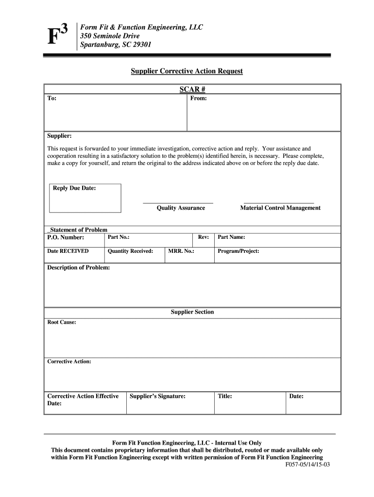 Spartanburg, SC 29301Supplier Corrective Action Request