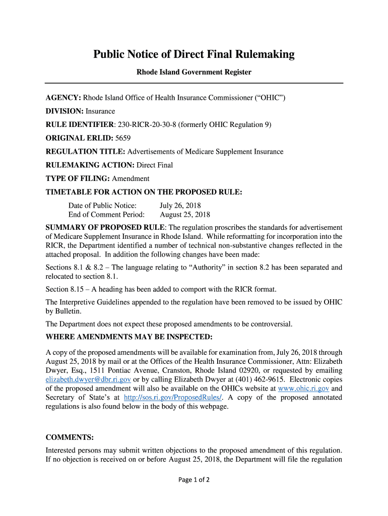 AGENCY: Rhode Island Office of Health Insurance Commissioner (OHIO)