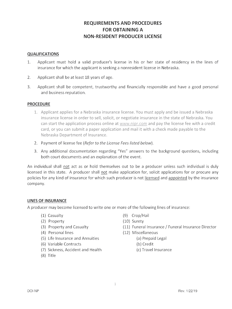 1. Applicant must hold a valid producer\'s license in his or her state of residency in the lines of