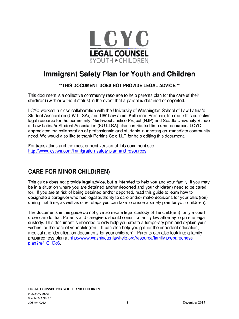 Get the free Immigrant Safety Plan for Youth and Children