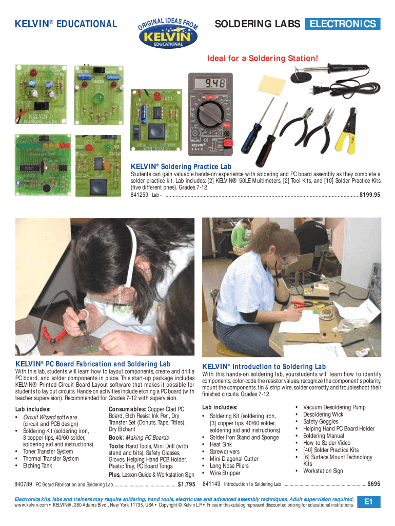 KELVIN EDUCATIONAL IDEAS For GINA M SOLDERING LABS ELECTRONICS Ideal for a Soldering Station!KELVIN Soldering Practice Lab Students can gain valuable Hanson experiences with soldering and PC board
