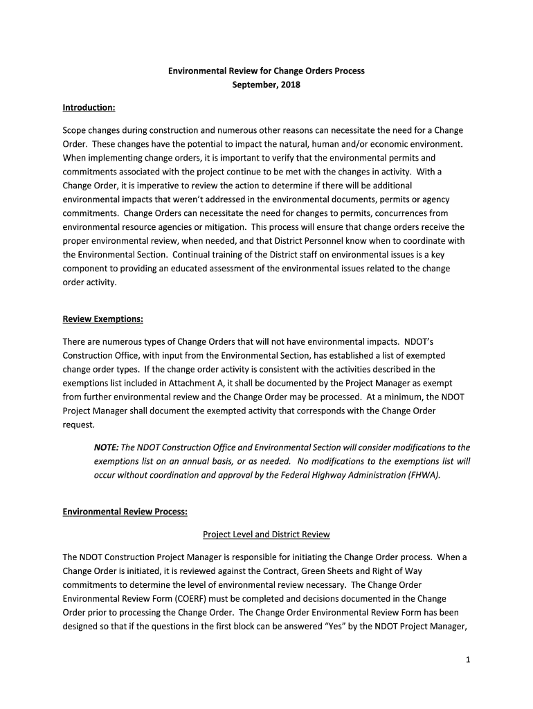Get the free Environmental Review for Change Orders Process September ...