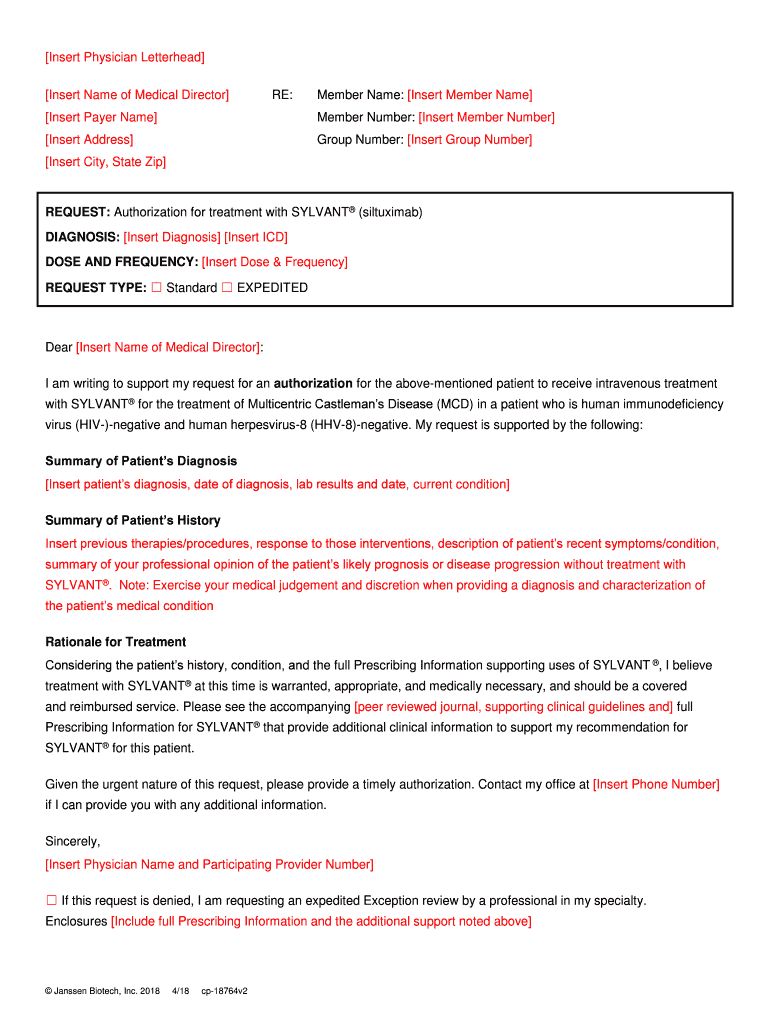 Get the free Insert Physician Letterhead - SYLVANT (siltuximab)
