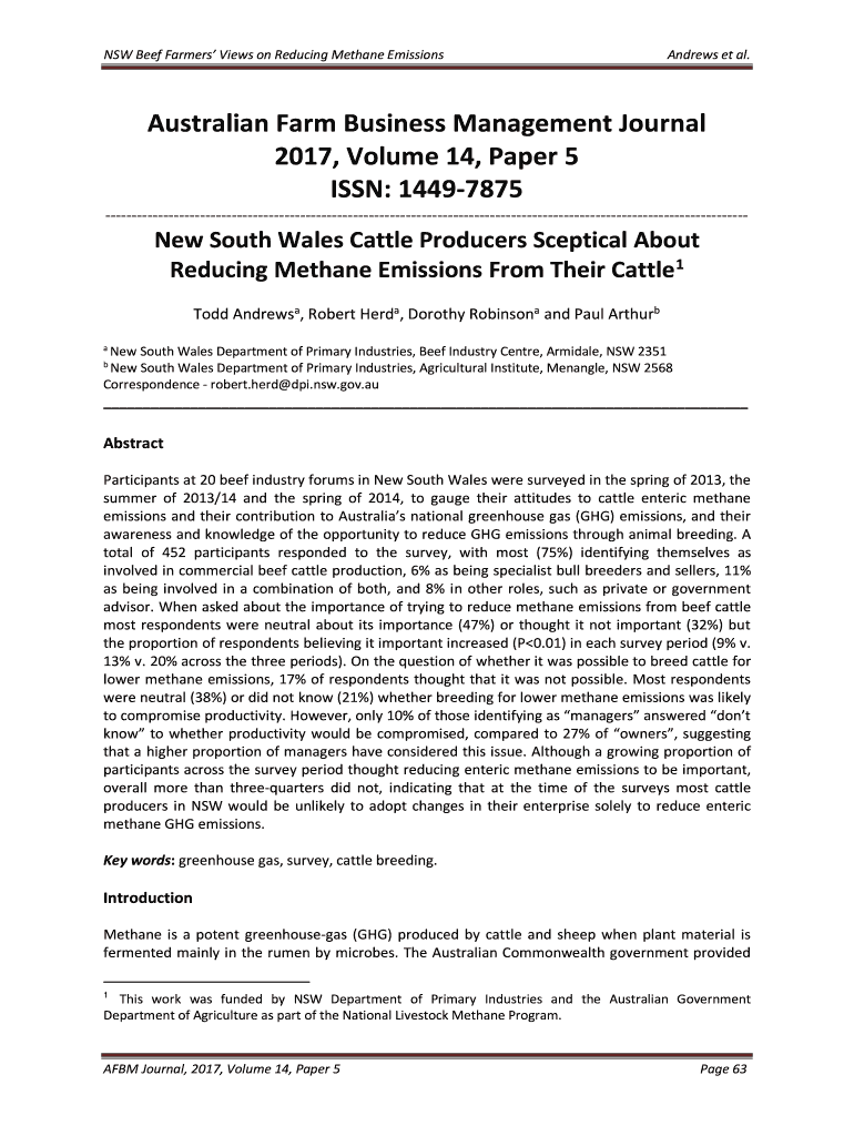 NSW Beef Farmers Views on Reducing Methane Emissions Andrews et al. Australian Farm Business Management Journal