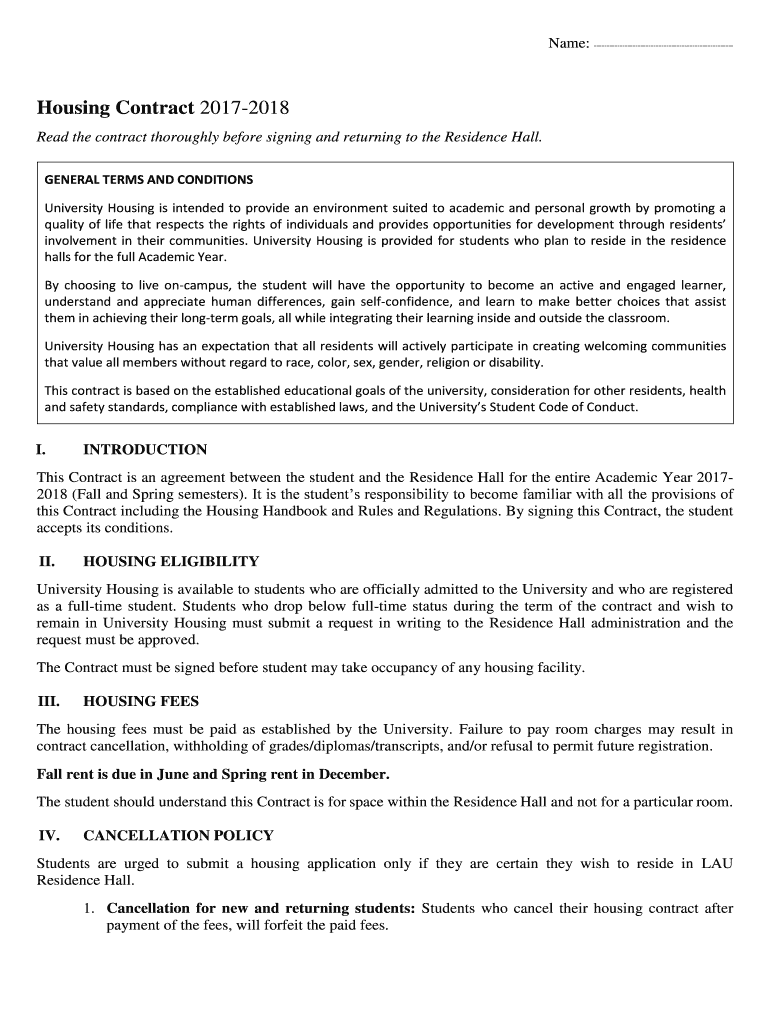 Name: Housing Contract 20172018
