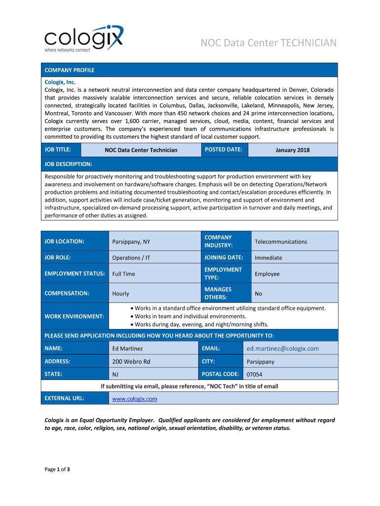 Get the free NOC Data Center TECHNICIAN - Cologix