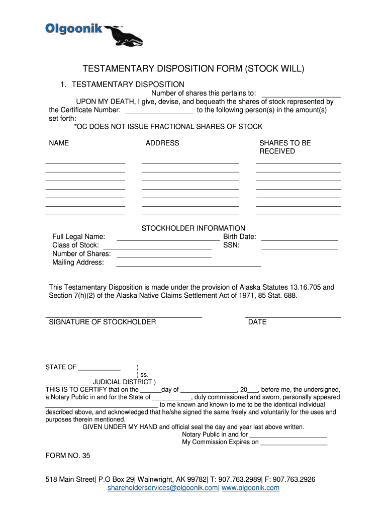 TESTAMENTARY DISPOSITION FORM (STOCK WILL)