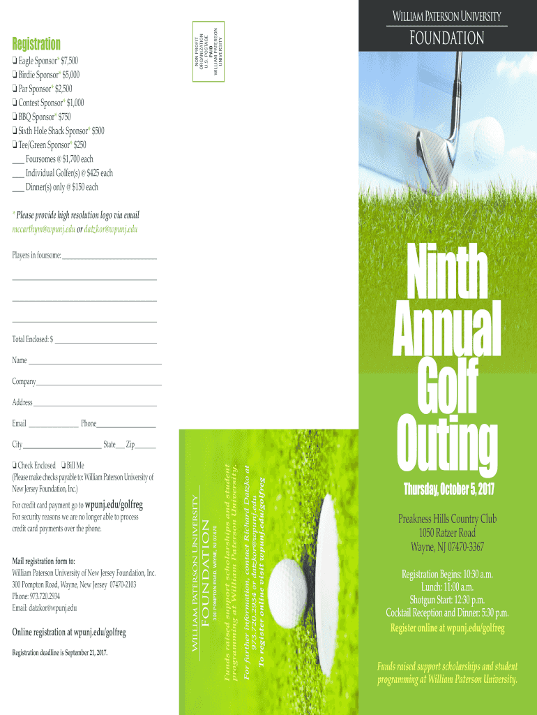 Get the free Ninth Annual Golf Outing - ww2.wpunj.edu - ww2 wpunj