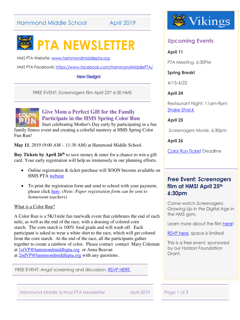 HMS PTA Facebook: https://www.facebook.com/HammondMiddlePTA/Upcoming Events