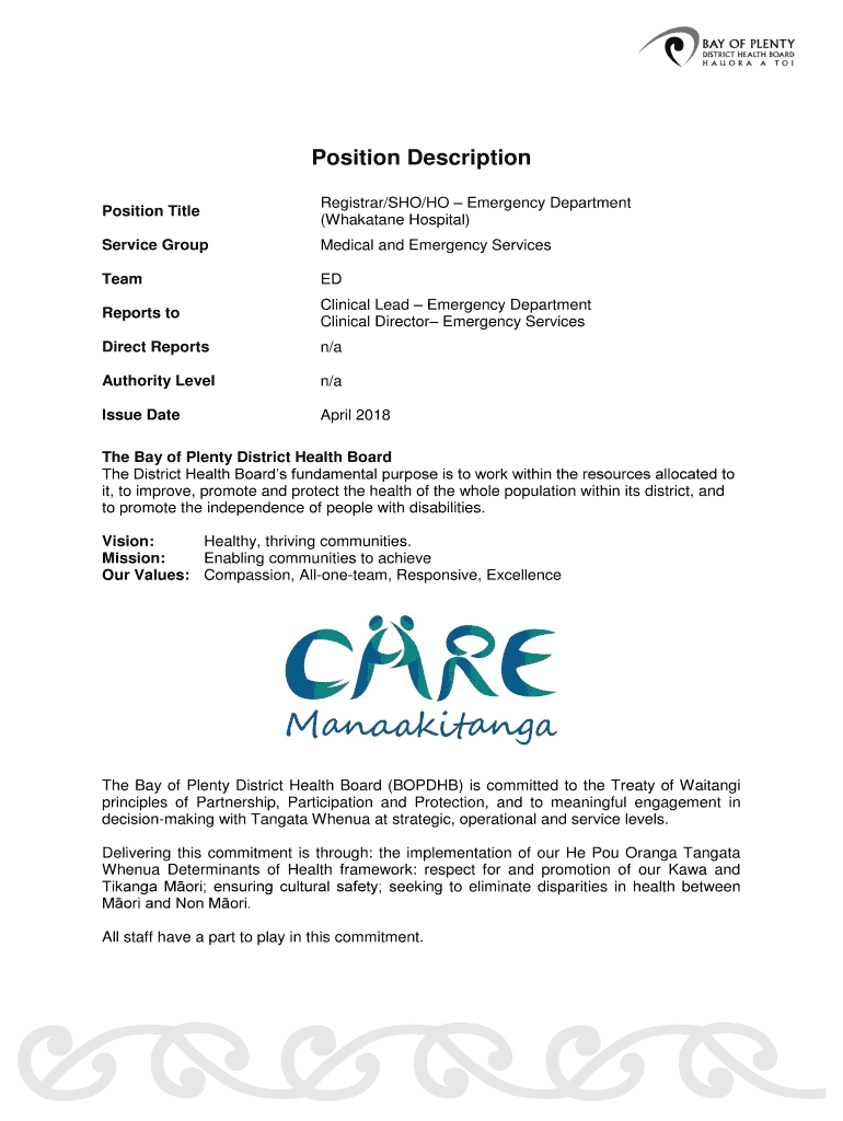Position Description Position TitleRegistrar/WHO/HO Emergency Department (Whakatane Hospital)Service GroupMedical and Emergency ServicesTeamEDReports clinical Lead Emergency Department Clinical Director