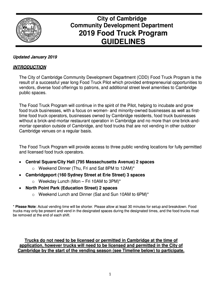 The City of Cambridge Community Development Department (CDD) Food Truck Program