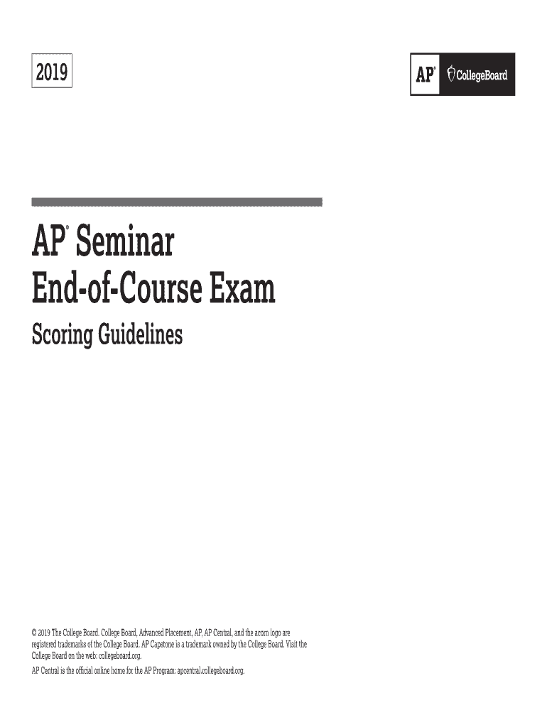 Get the free AP Seminar End-of-Course Exam Scoring Guidelines from the 2019 Exam Administration. ...
