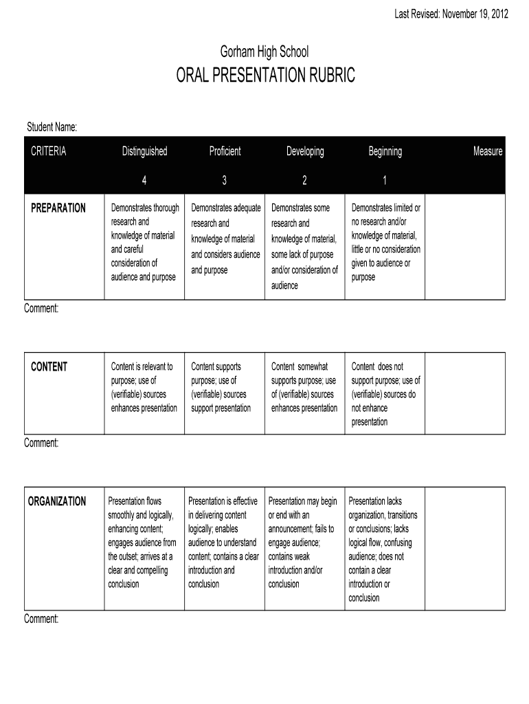 Last Revised: November 19, 2012Gorham High Schoolgirl PRESENTATION RUBRIC