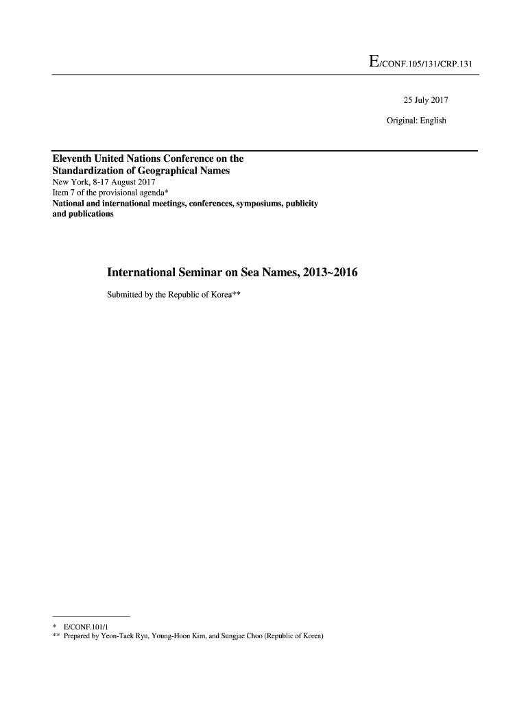 Get the free International Seminar on Sea Names, 20132016 - unstats un
