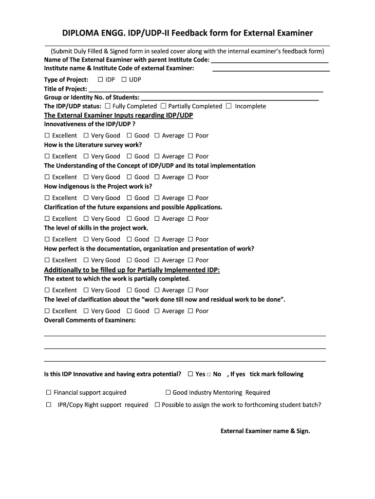 Get the free External Examiner's Feedback FormProject / IDP / UDP for ...