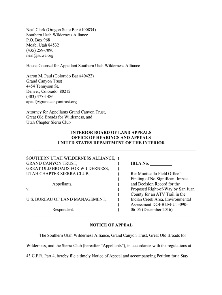 SUWA members, donors, and anyone interested in supporting the preservation of wilderness areas in Southern Utah may choose to file with the organization.