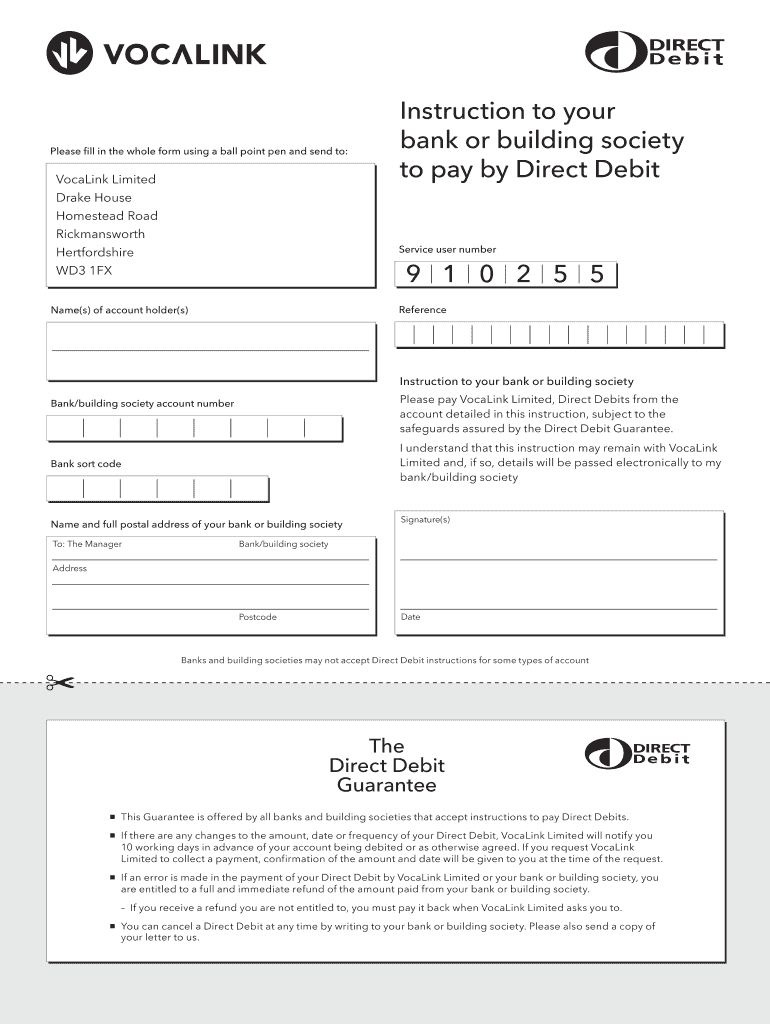 Please fill in the whole form using a ball point pen and send to:Vocal ink Limited