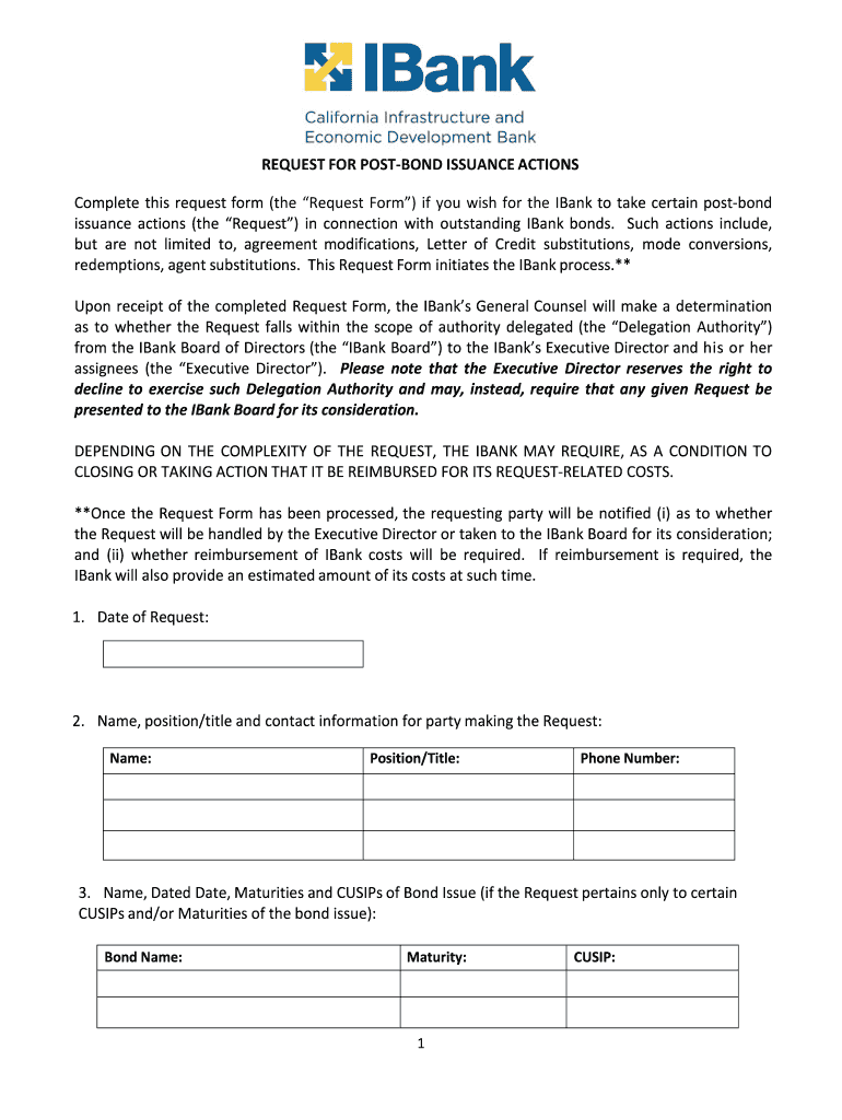 Complete this request form (the Request Form) if you wish for the Bank to take certain postbond