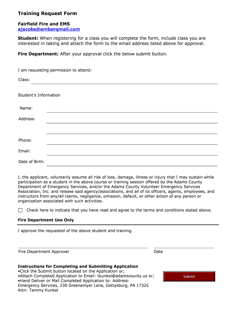 Obtain a copy of the training request form from the HR department or the designated person responsible for training.