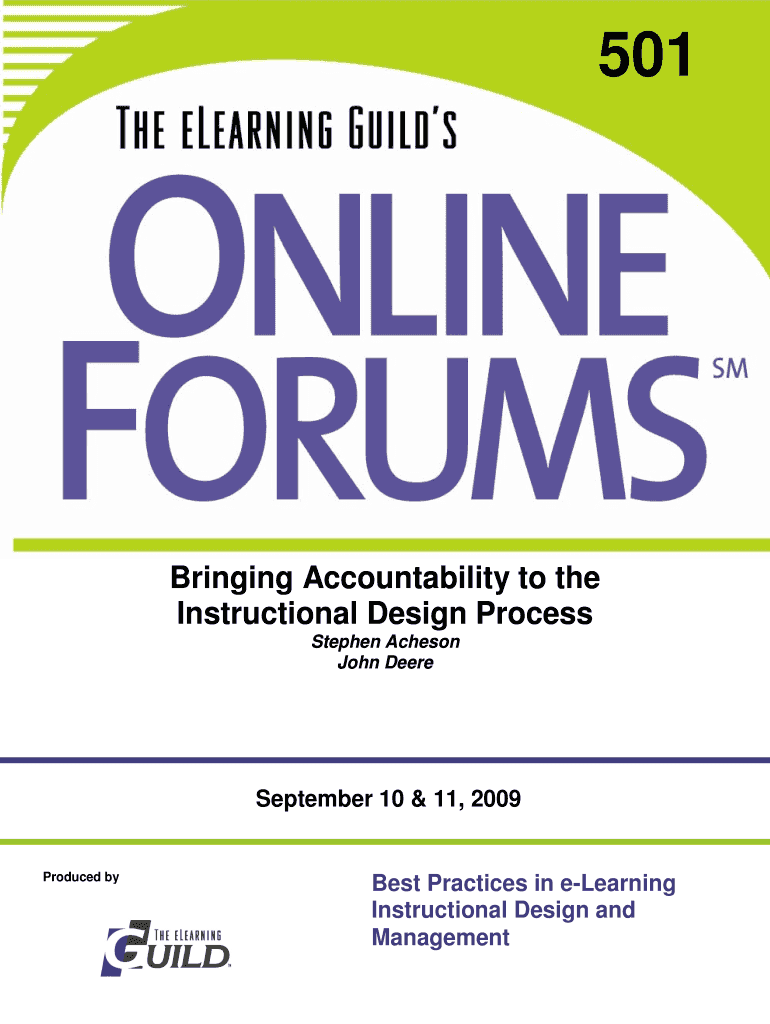 501Bringing Accountability to the Instructional Design Process Stephen Acheson John Deere September 10 & 11, 2009Produced by Best Practices in e-learning Instructional Design and Management Best Practices