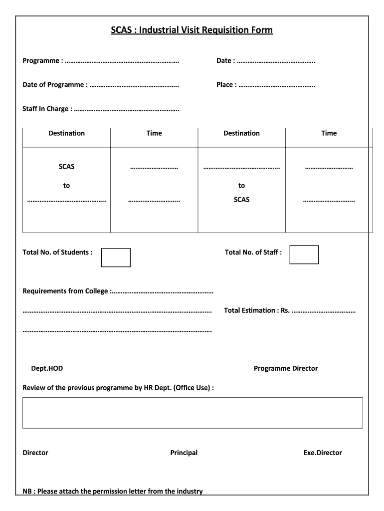SEAS : Industrial Visit Requisition Form Program :. Date :. Date of Program :. Place :. Staff In Charge :. DestinationTimeDestinationTimeSCAS.to