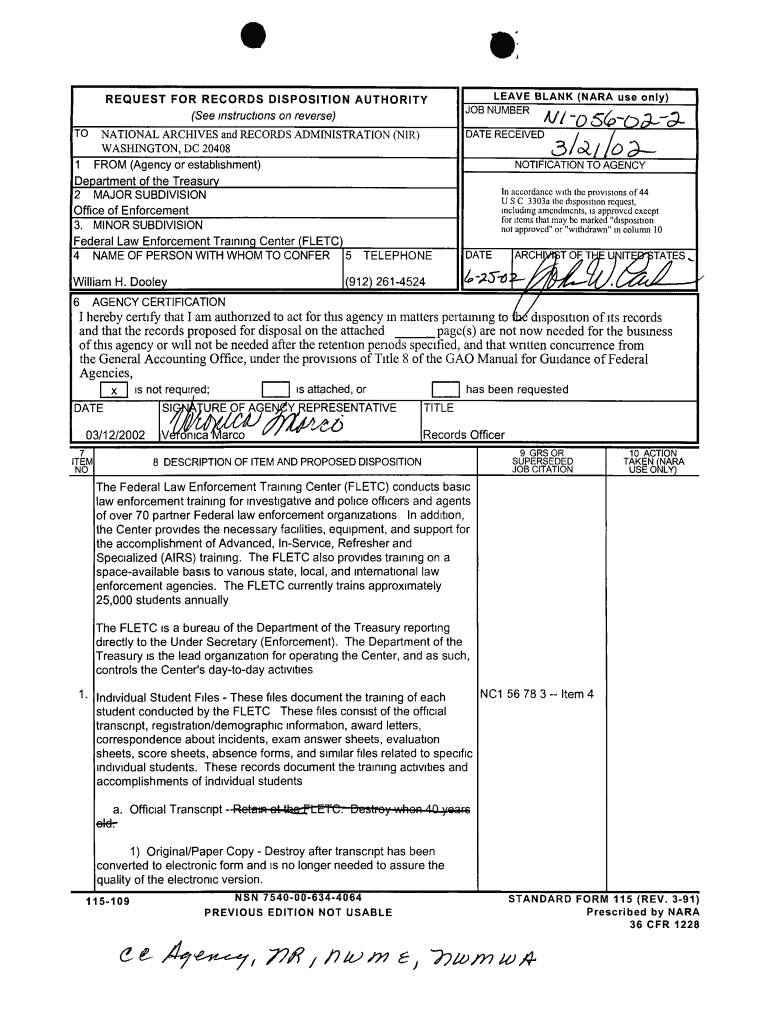 REQUESTOR RECORDS.:DISPOSITIONLEAVE BLANK (NARA use only)