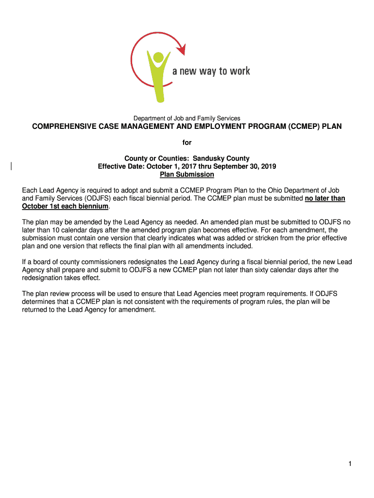 Department of Job and Family ServicesCOMPREHENSIVE CASE MANAGEMENT AND EMPLOYMENT PROGRAM (CC MEP) PLAN