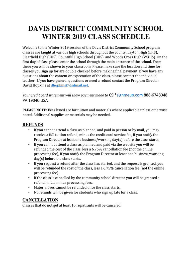 Get the free davis district community school winter 2019 class ... - SignMeUp