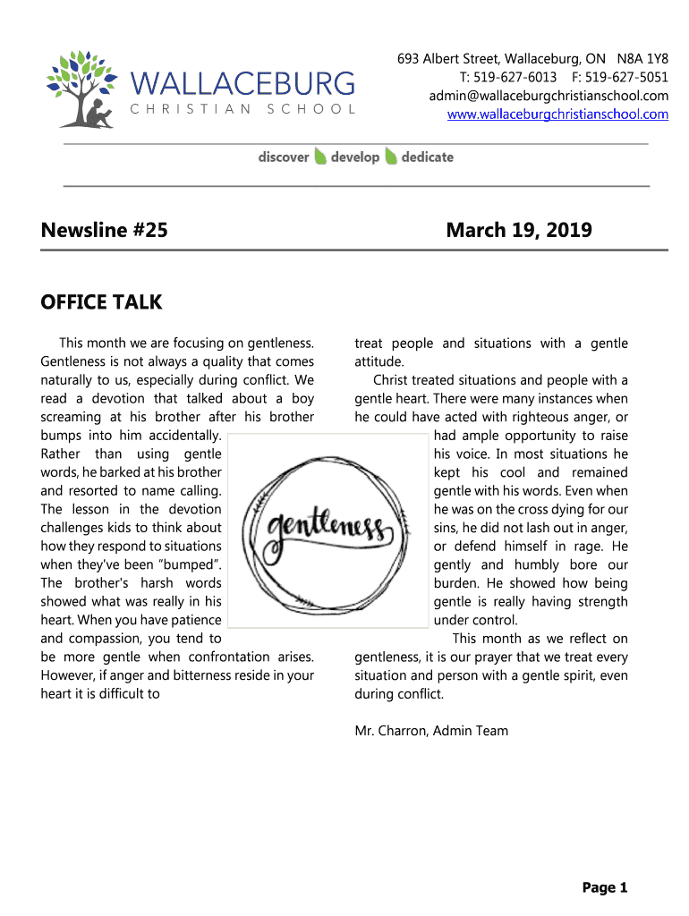 www.wallaceburgchristianschool.comNewsline #25March 19, 2019OFFICE TALK