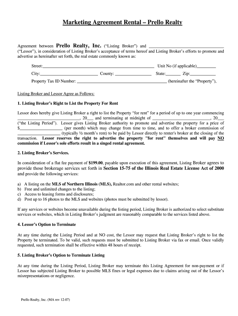 Get the free Listing Agreement Rental - Prello Realty, Inc.