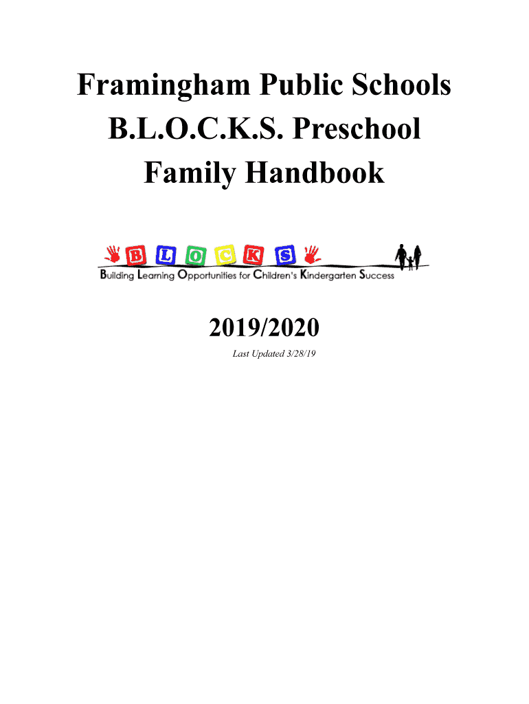 4/26/2019Juniper Hill School Family and Student Handbook 1920 Google DocsFramingham Public Schools B.L.O.C.K.S. Preschool Family Handbook2019/2020 Last Updated 3/28/19https://docs.google.com/document/d/1×8