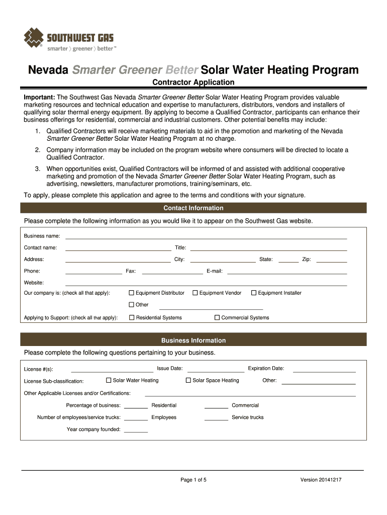 Important: The Southwest Gas Nevada Smarter Greener Better Solar Water Heating Program provides valuable