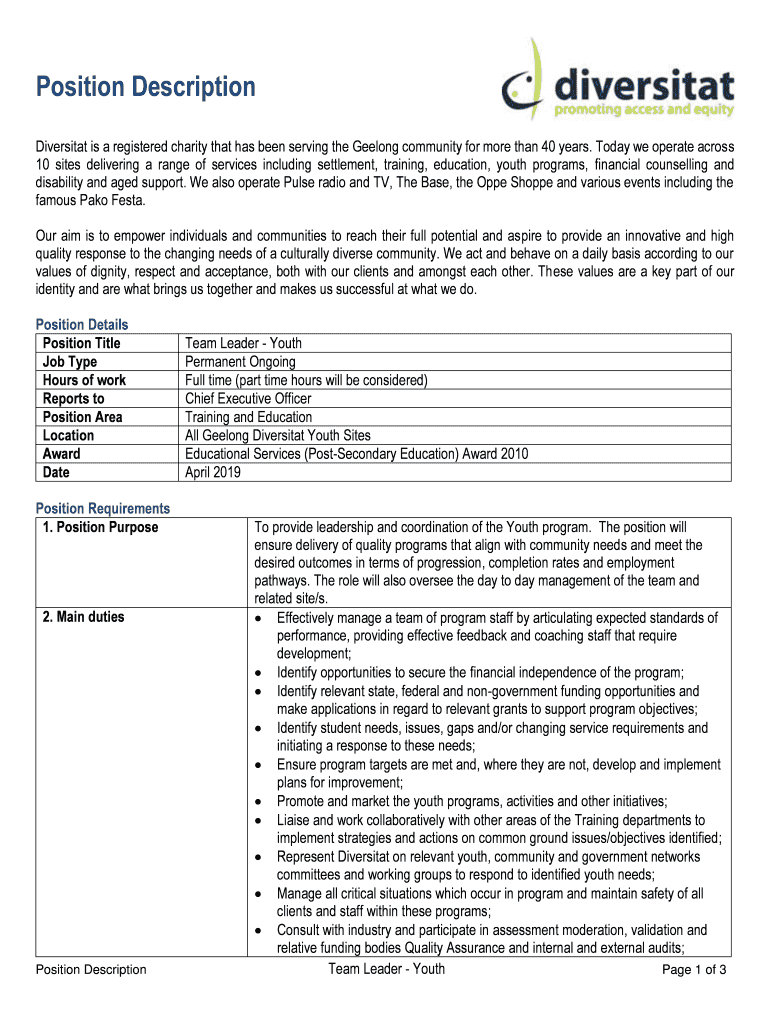 Diversity is a registered charity that has been serving the Geelong community for more than 40 years. Today we operate across