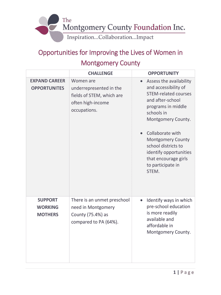 Get the free Opportunities for Improving the Lives of Women in ...