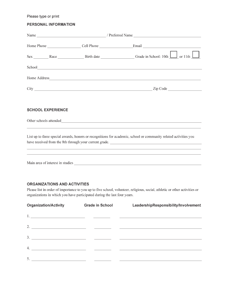 Information such as personal details, contact information, leadership experience, and reasons for wanting to participate must be reported on the application form.