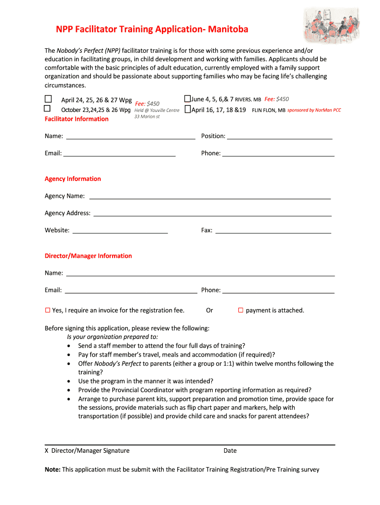 Get the free NPP Facilitator Training Application- Manitoba - Nobodys ...