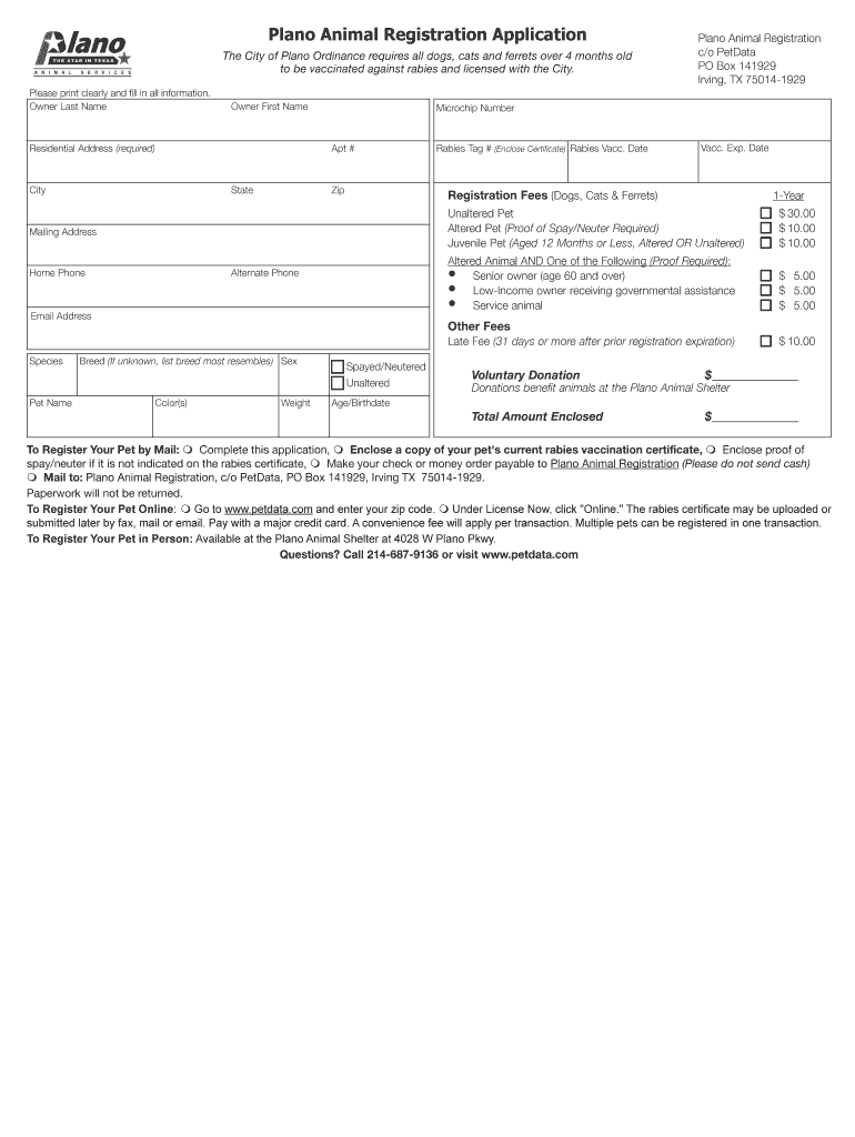 Get the free Plano Animal Registration Application