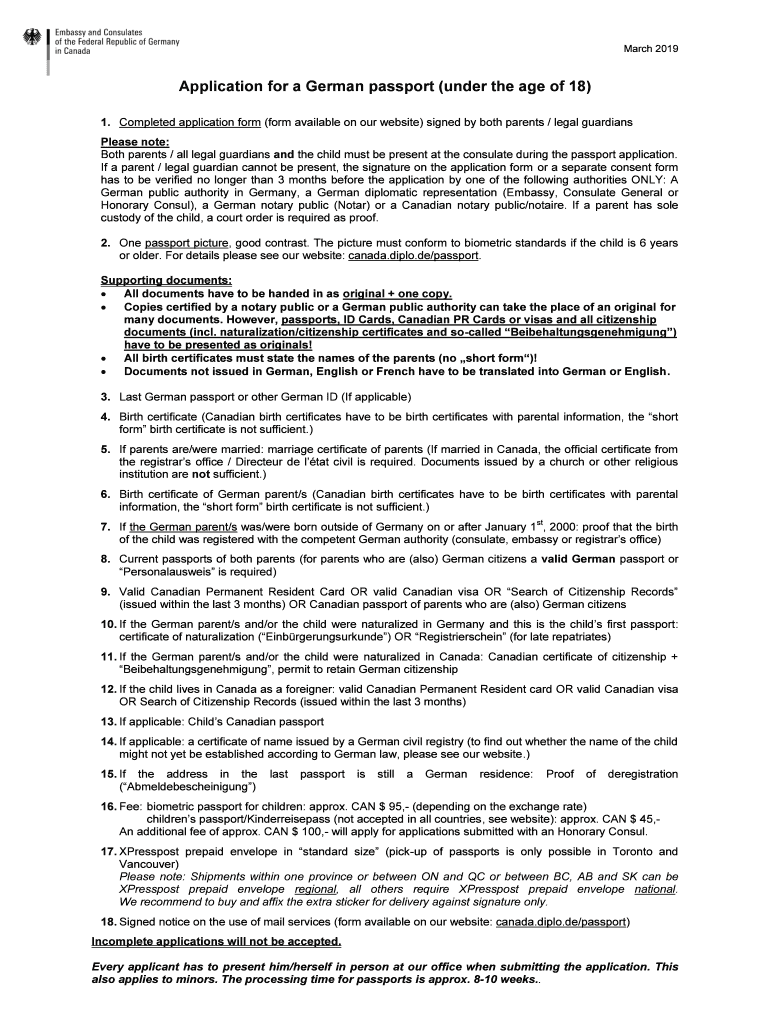 Get the free Application for a German passport (under the age of 18) - canada diplo