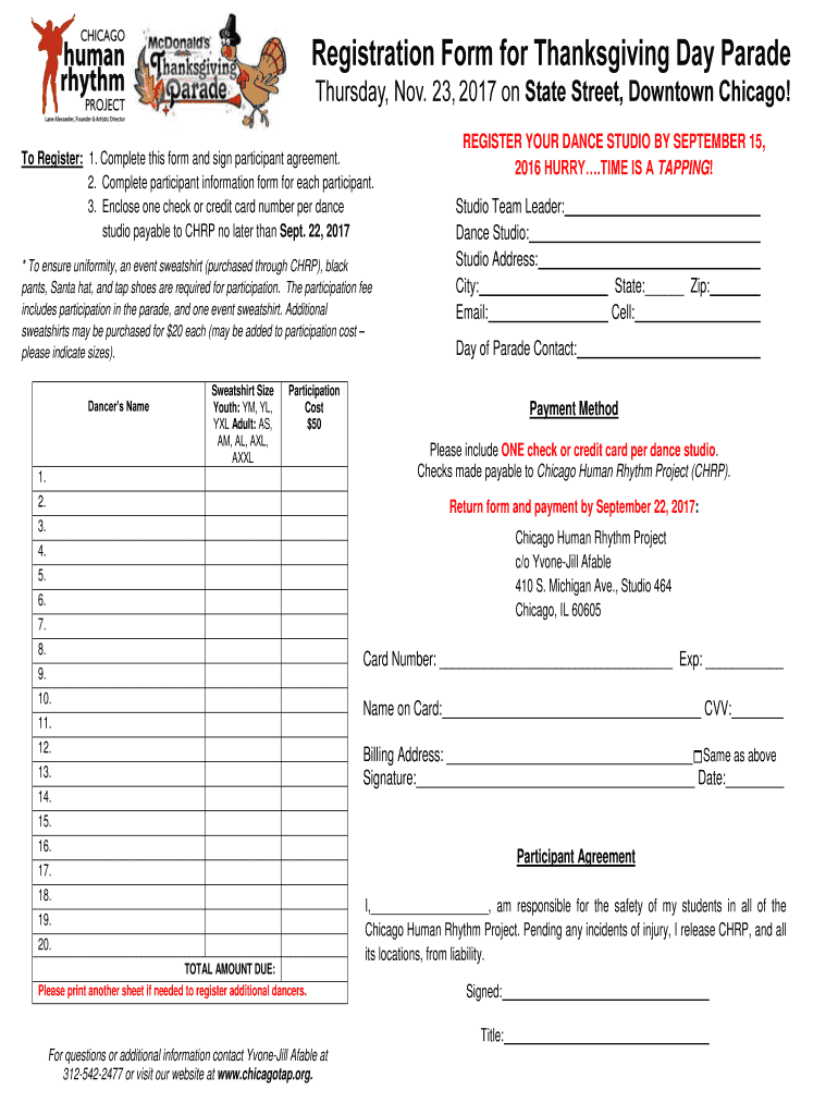 Get the free Registration Form for Thanksgiving Day Parade