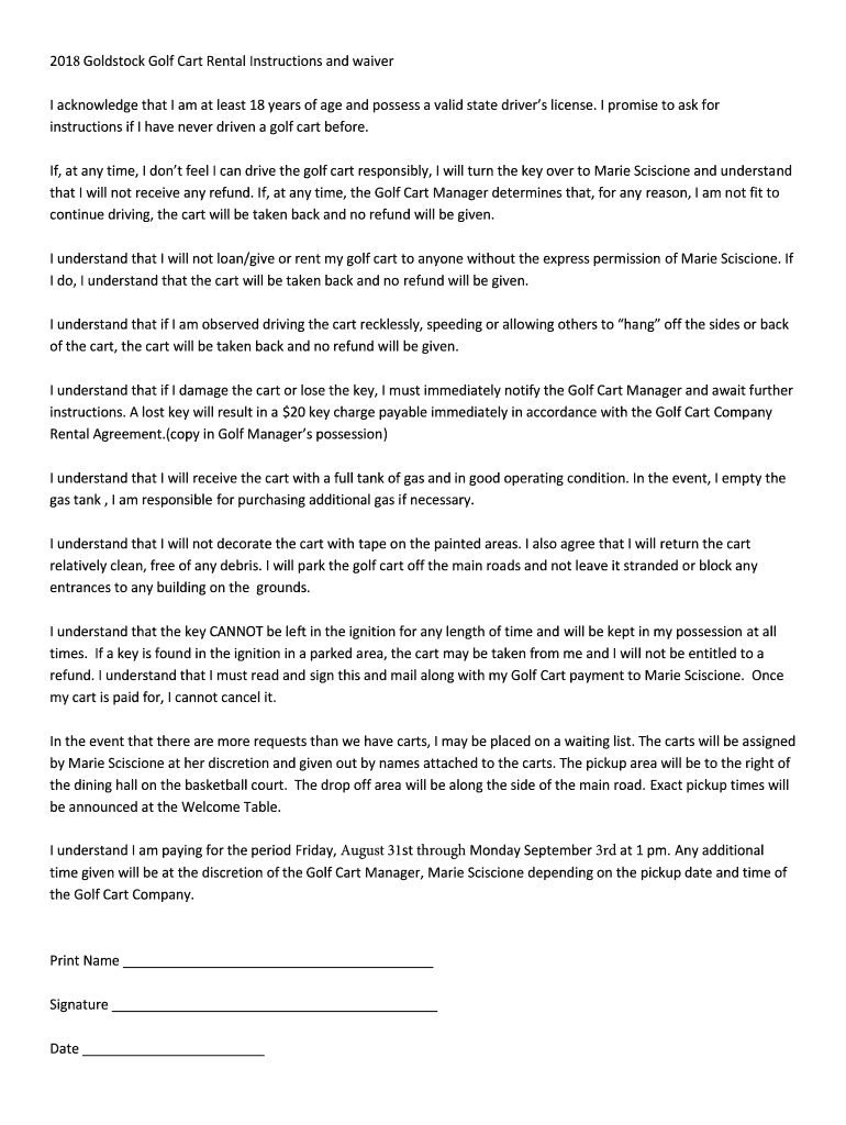 Get the free 2018 Goldstock Golf Cart Rental Instructions and waiver