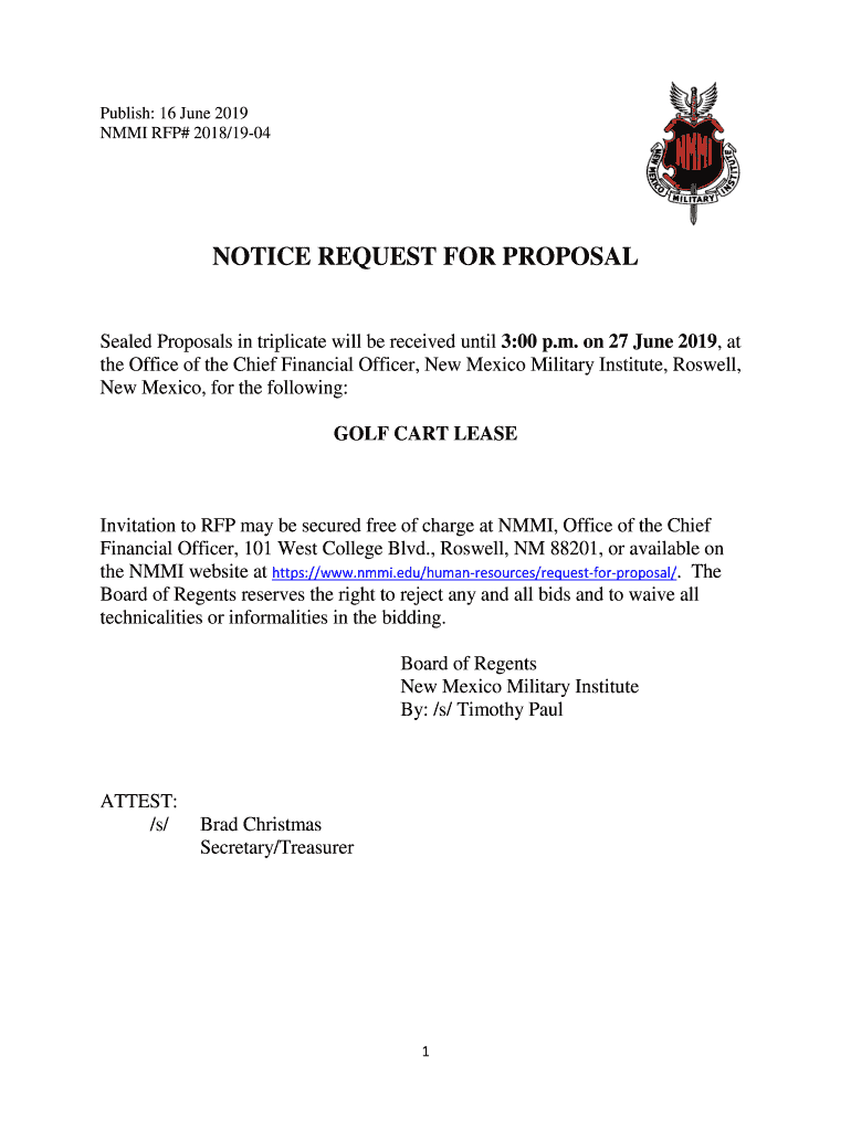 Get the free Request for ProposalNew Mexico Military Institute