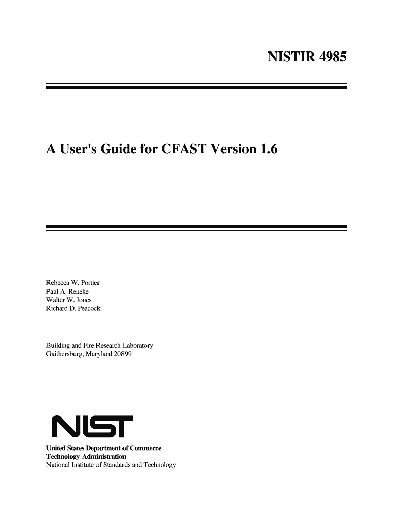 Get the free NISTIR 4985 A User's Guide for CFAST Version 1.6