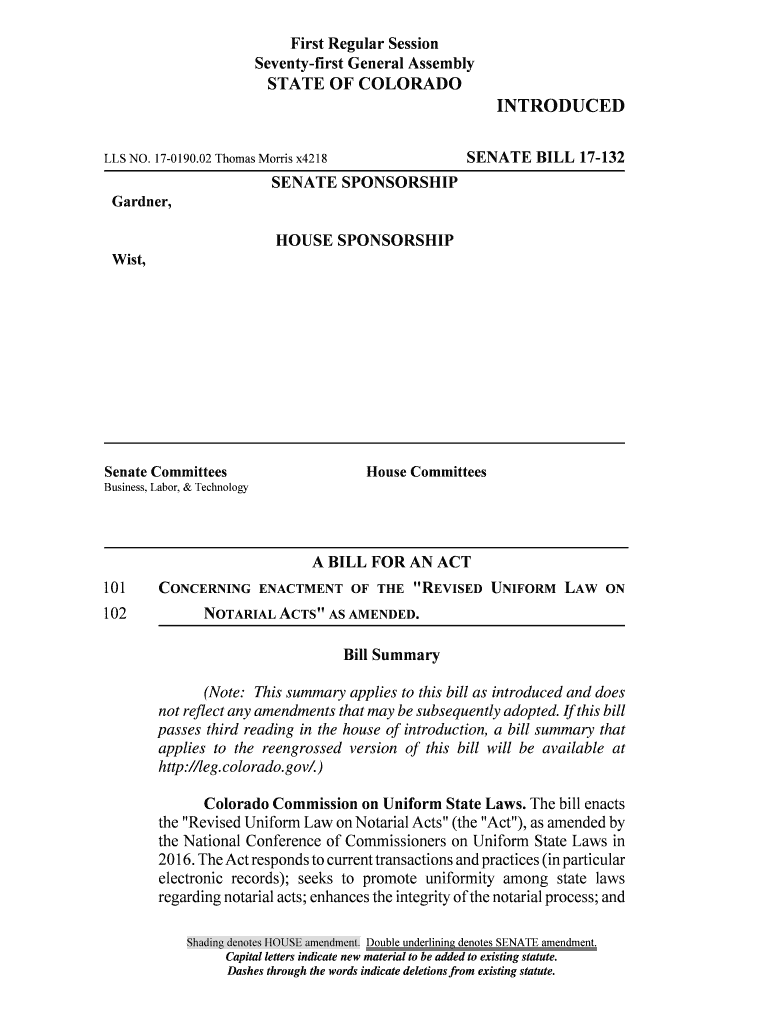 First Regular Session Seventy first General AssemblySTATE OF COLORADOINTRODUCED SENATE BILL 17132LLS NO. 170190.02 Thomas Morris x4218SENATE SPONSORSHIP Gardner, HOUSE SPONSORSHIP Wist, Senate Committees