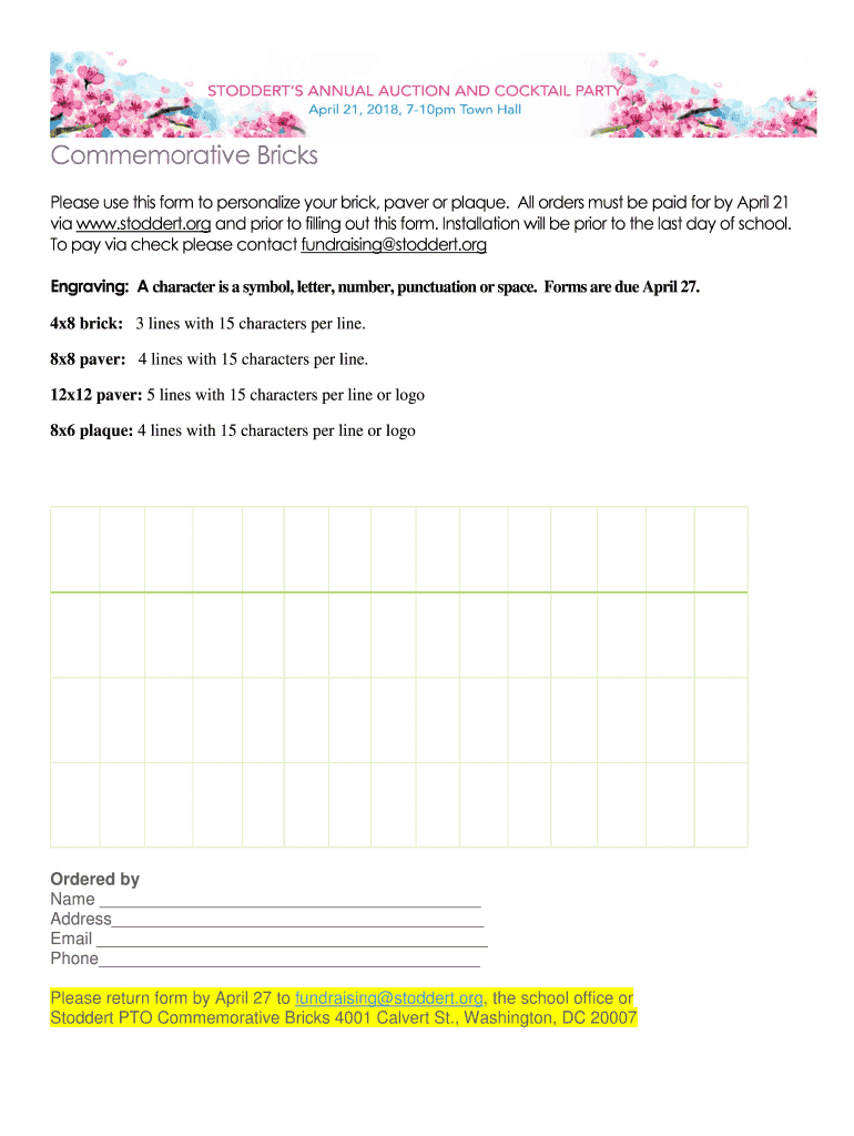 Please use this form to personalize your brick, paver or plaque. All orders must be paid for by April 21