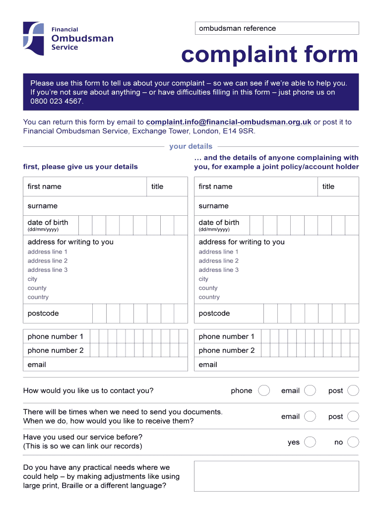 Get the free Financial Ombudsman Service Complaint Form. Financial Ombudsman Service Complaint Form